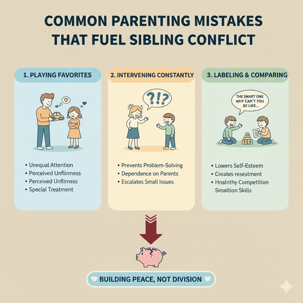 Well-intentioned parents often unknowingly intensify sibling rivalry through common mistakes. Recognizing these patterns is crucial for change.
