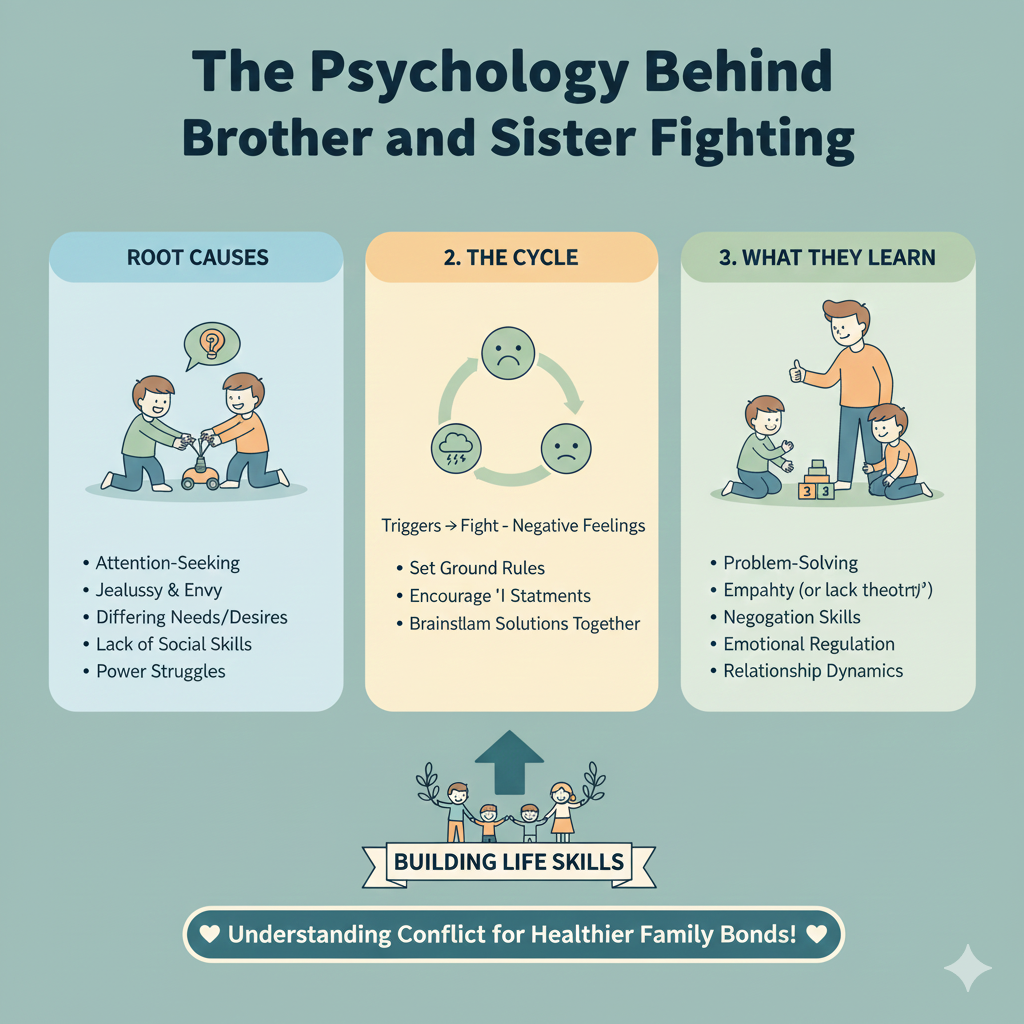 Neuroscience research reveals that sibling conflict activates the same brain regions involved in threat detection and emotional processing as other interpersonal conflicts. However, the prefrontal cortex—responsible for impulse control and rational thinking—is still developing throughout childhood and adolescence, explaining why conflicts escalate quickly.
